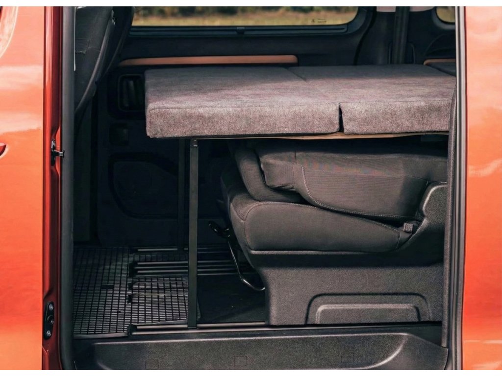 Pokud cestujete jen ve dvou a potřebujete ještě více prostoru, můžete odstranit zadní sedačky. Rám postele je samonosný.